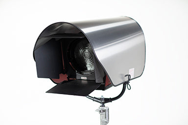 Model# RH119 - This Rain Hat model fits a Mole-Richardson 10" Vari-Senior LED fixture. Designed to maximize air flow over cooling fans. Can be used with or without barn doors. Packs flat, allowing for easy fit in standard flag carts.